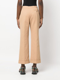 cropped flared trousers Highlights - Almond beige - Cotton-linen blend - Flared design - Cropped leg - Mid-rise - Two side inset pockets - Two rear button-fastening jetted pockets - Turn-up hem Imported Composition Cotton 61%, Linen/Flax 39% SIZE & FIT Model measurements Height 5 ft 10 in(1.77 m) Bust/Chest 29.92 in(76 cm) Hips 34.25 in(87 cm) Waist 23.62 in(60 cm) FittingInformation Designed with a flared hem, these trousers allow for a close fit at the waist with a slim fit over the leg and widening towards the hem Made from a midweight non-stretch fabric Washing instructions Machine Wash
