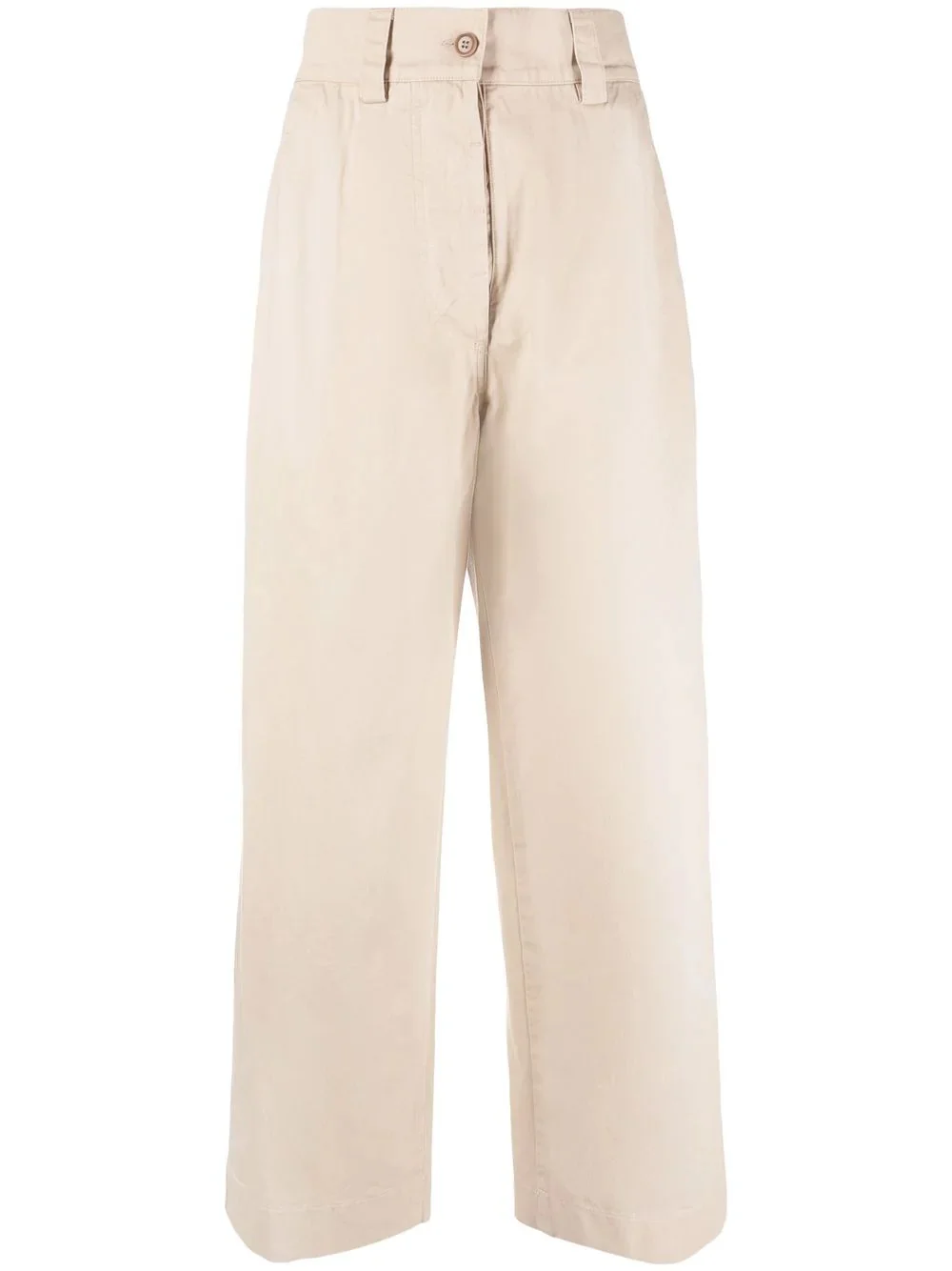 high-rise straight-leg trousers khaki beige cotton high waist front button and zip fastening two side inset pockets two rear patch pockets straight leg ankle-length Made in Italy Composition Cotton 100% SIZE & FIT Model measurements Height 5 ft 10 in(1.77 m) Bust/Chest 32.28 in(82 cm) Hips 35.03 in(89 cm) Waist 25.19 in(64 cm) FittingInformation This piece fits true to size. We recommend you get your regular size Designed to be fitted at the waist and hips, loose over the leg Made with a mid-weight non-stretch fabric