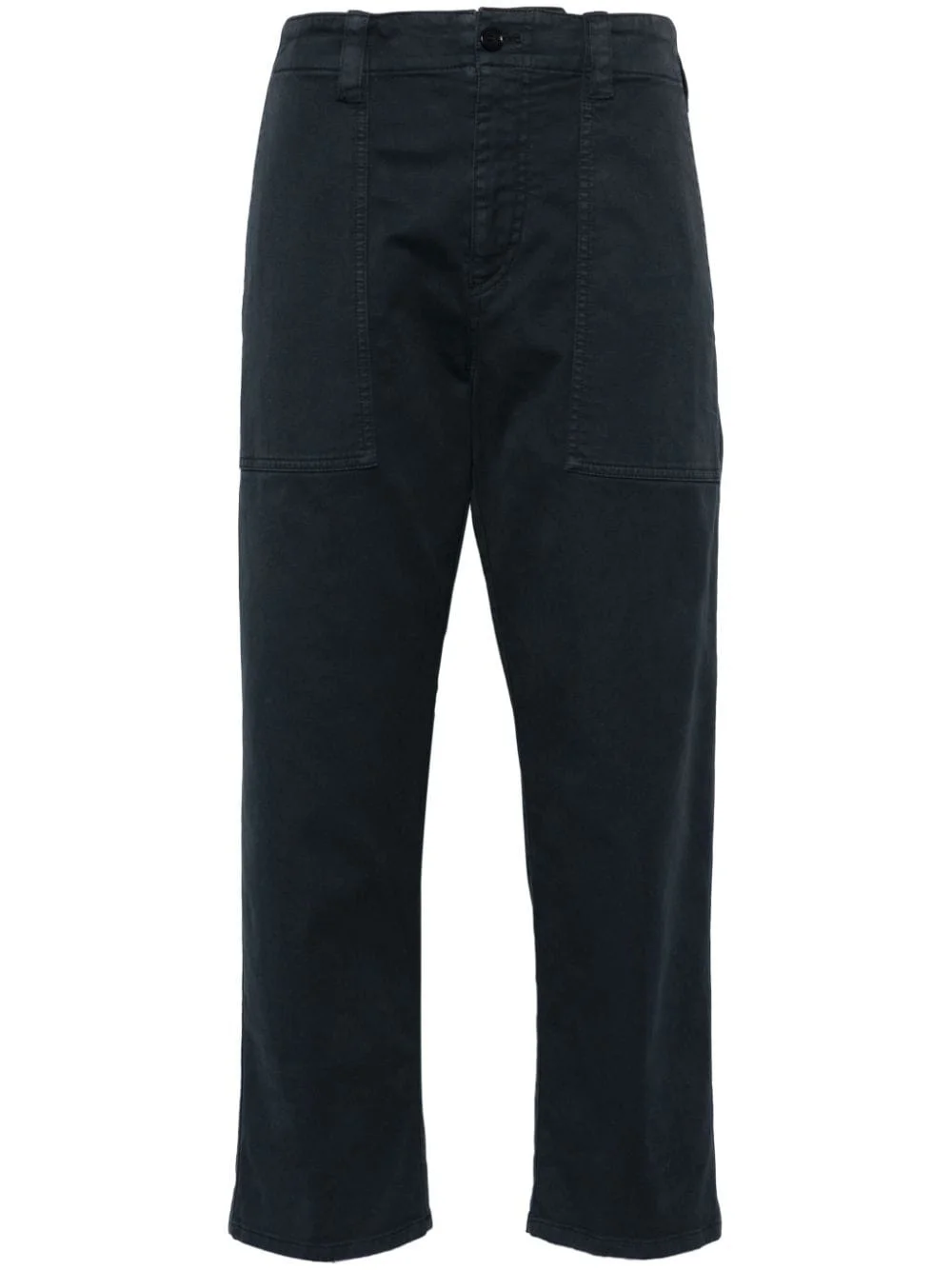cropped trousers Highlights - Navy blue - Stretch-cotton - Twill weave - Button fly fastening - Belt loops - Two front patch pockets - Two rear flap pockets - Slim cut - Cropped leg Imported Composition Cotton 98%, Elastane 2% SIZE & FIT Model measurements Height 5 ft 11 in(1.8 m) Bust/Chest 32.28 in(82 cm) Hips 35.03 in(89 cm) Waist 24.8 in(63 cm) FittingInformation Designed for a tapered fit, these trousers allow for a close fit at the waist and a loose unrestricted fit over the leg with a closer fit towards the ankle Cropped in length Made from a midweight stretch fabric, this piece offers elasticity and flexibility when worn