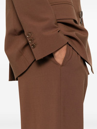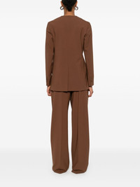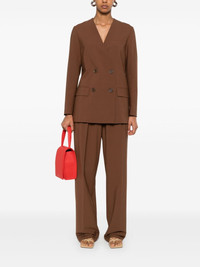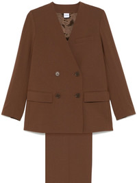 double-breasted suit Highlights - Walnut brown - Textured finish - Blazer: - Double-breasted button fastening - V-neck - No lapels - Long sleeves - Buttoned cuffs - Chest welt pocket - Two side flap pockets - Central rear vent - Full lining - Straight hem - Trousers: - Front button and zip fastening - Belt loops - Pleat detailing - Two side welt pockets - Pressed crease - Rear welt pocket - Tapered leg Made in Italy Composition Outer: Polyester 53%, Wool 43%, Elastane 4% Lining: Viscose 100% SIZE & FIT Model measurements Height 5 ft 10 in(1.77 m) Bust/Chest 33.07 in(84 cm) Hips 37 in(94 cm) Waist 24.8 in(63 cm) FittingInformation Designed as separates, the body of this piece offers a close fit whilst the trousers have a wide fit across the entire leg The vented hem offers movement at the rear Made from a midweight fabric Washing instructions Dry Clean Only