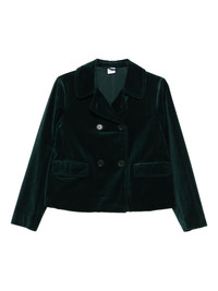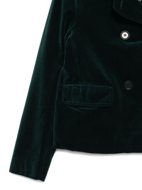 double-breasted velvet jacket Highlights - Dark green - Double-breasted - Notched lapels - Front button fastening - Front flap pockets - Long sleeves Imported Composition Fabric 100% Washing instructions Read Manufacturer Guidelines