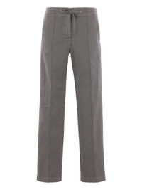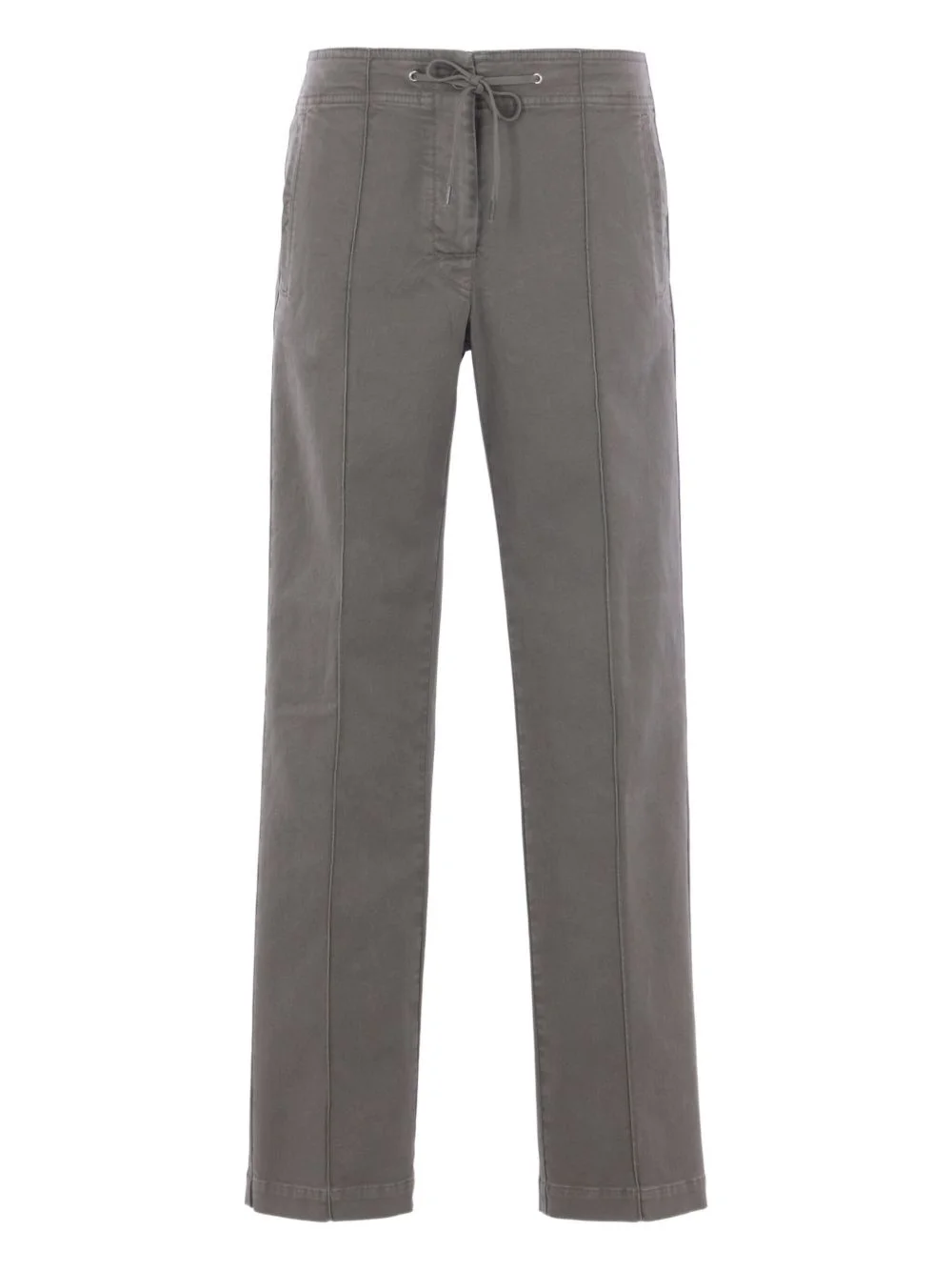 drawstring-waist trousers Highlights - Grey - Gabardine texture - Drawstring waist - Front button fly - Central crease Imported Composition Cotton 98%, Spandex/Elastane 2% Washing instructions Read Manufacturer Guidelines