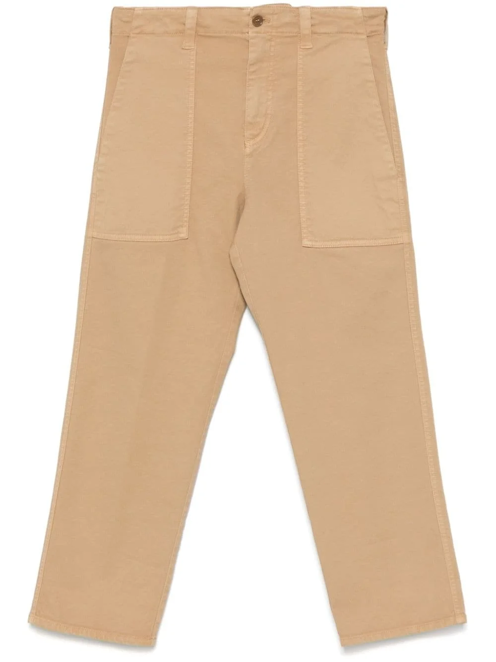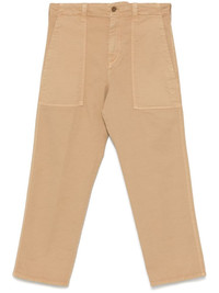 gabardine cropped trousers Highlights - Caramel brown - Cotton blend - Gabardine weave - Cropped leg - Front button and zip fastening - High-waisted - Belt loops - Two diagonal pockets to the sides - Two rear button-fastening pockets Imported Composition Cotton 98%, Elastane 2% SIZE & FIT Model measurements Height 5 ft 10 in(1.78 m) Bust/Chest 33.85 in(86 cm) Hips 36.61 in(93 cm) Waist 26.77 in(68 cm) FittingInformation Designed for a straight-leg fit, these trousers allow for a close fit at the waist and an unrestricted, comfortable fit over the leg Cropped in length Made from a midweight stretch fabric, this piece offers elasticity and flexibility when worn
