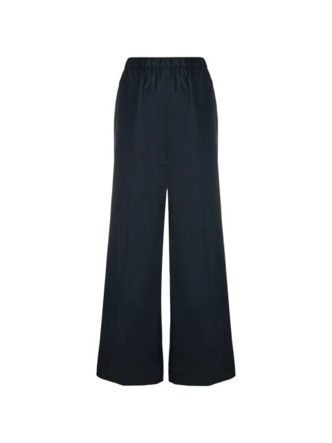 high-waisted palazzo trousers Highlights - Beige - Elasticated waistband - Side slit pockets - Wide leg Imported Composition Cotton 100% Washing instructions Read Manufacturer Guidelines