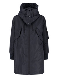 hooded coat Highlights - Black - Drawstring hood - Zip fastening - Press-stud fastening - Sleeve pocket Made in Italy Composition Polyester 100% Washing instructions Read Manufacturer Guidelines