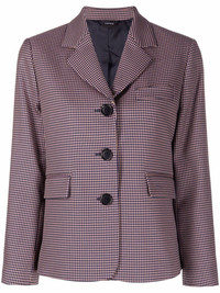 houndstooth print blazer pink houndstooth print classic lapels front button fastening two front flap pockets long sleeves buttoned cuffs Made in Italy Composition Outer: Polyester 57%, Cotton 37%, Polyamide 5%, Elastane 1% Lining: Viscose 100% SIZE & FIT Model measurements Height 5 ft 9 in(1.76 m) Bust/Chest 34.25 in(87 cm) Hips 36.22 in(92 cm) Waist 25.19 in(64 cm) FittingInformation This piece fits true to size. We recommend you get your regular size Cut for a loose fit Made with a mid-weight fabric