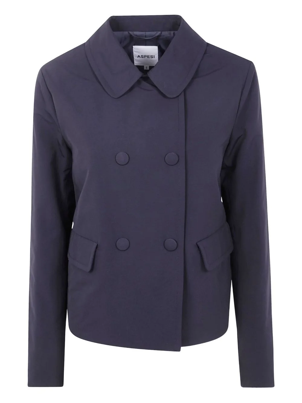 double-breasted jacket Highlights - Navy blue - Double-breasted closure - Flap pockets - Long sleeves Imported Composition Fabric 100% Washing instructions Read Manufacturer Guidelines