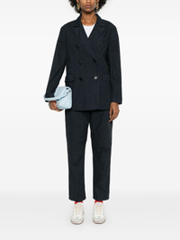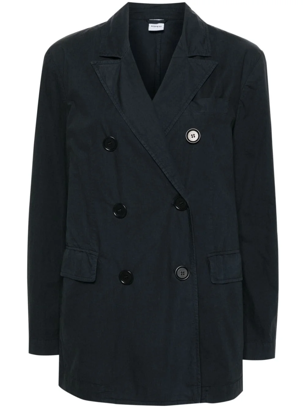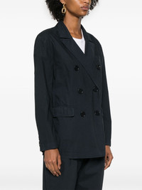 double-breasted cotton blazer Highlights - Navy blue - Cotton - Peak lapels - Double-breasted button fastening - Long sleeves - Buttoned cuffs - Chest welt pocket - Two side flap pockets - Unlined - American rear vent - Straight hem Imported Composition Cotton 100% SIZE & FIT Model measurements Height 5 ft 11 in(1.8 m) Bust/Chest 31.49 in(80 cm) Hips 35.82 in(91 cm) Waist 24.8 in(63 cm) FittingInformation Designed for a relaxed fit, this piece allows for comfort and movement when worn The vented hem offers movement at the rear Made from a midweight non-stretch fabric This piece fits true to size – take your usual size