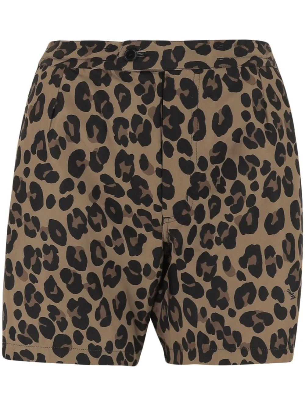 leopard-print shorts Highlights - Light brown - Front button and zip fastening - Rear elasticated waistband - Rear flap pocket Made in Italy Composition Polyester 100%