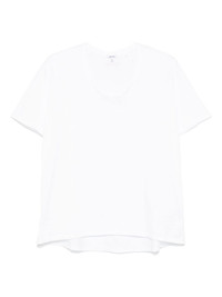 logo-print T-shirt Highlights - White - Crew neck - Three-quarter length sleeves - Straight hem Imported Composition Cotton 100% SIZE & FIT Model measurements Height 5 ft 9 in(1.76 m) Bust/Chest 31.88 in(81 cm) Hips 35.43 in(90 cm) Waist 24.8 in(63 cm) FittingInformation Designed to be unstructured, offering a loose fit throughout Made from a midweight non-stretch fabric, this piece offers minimal elasticity when worn Washing instructions Machine Wash