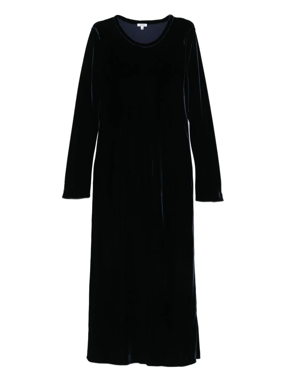 long-sleeve midi dress Highlights - Navy blue - Round neck - Long sleeves - Velvet effect Imported Composition Fabric 100% Washing instructions Read Manufacturer Guidelines