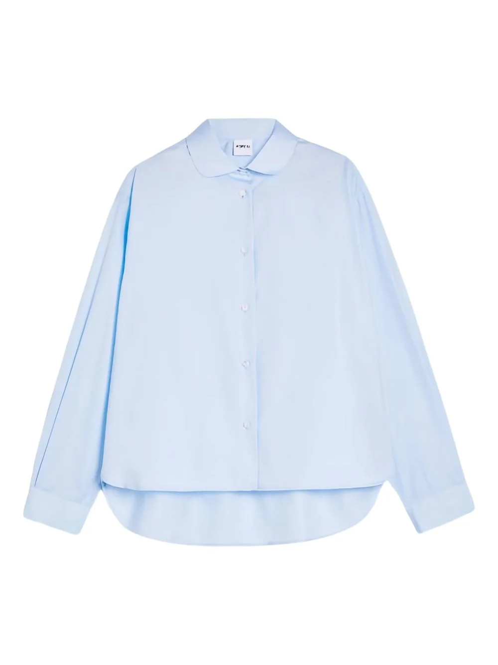 long-sleeves shirt Highlights - Blue - Peter-pan collar - Long sleeves - Button fastening - Curved hem Imported Composition Cotton 100% Washing instructions Read Manufacturer Guidelines
