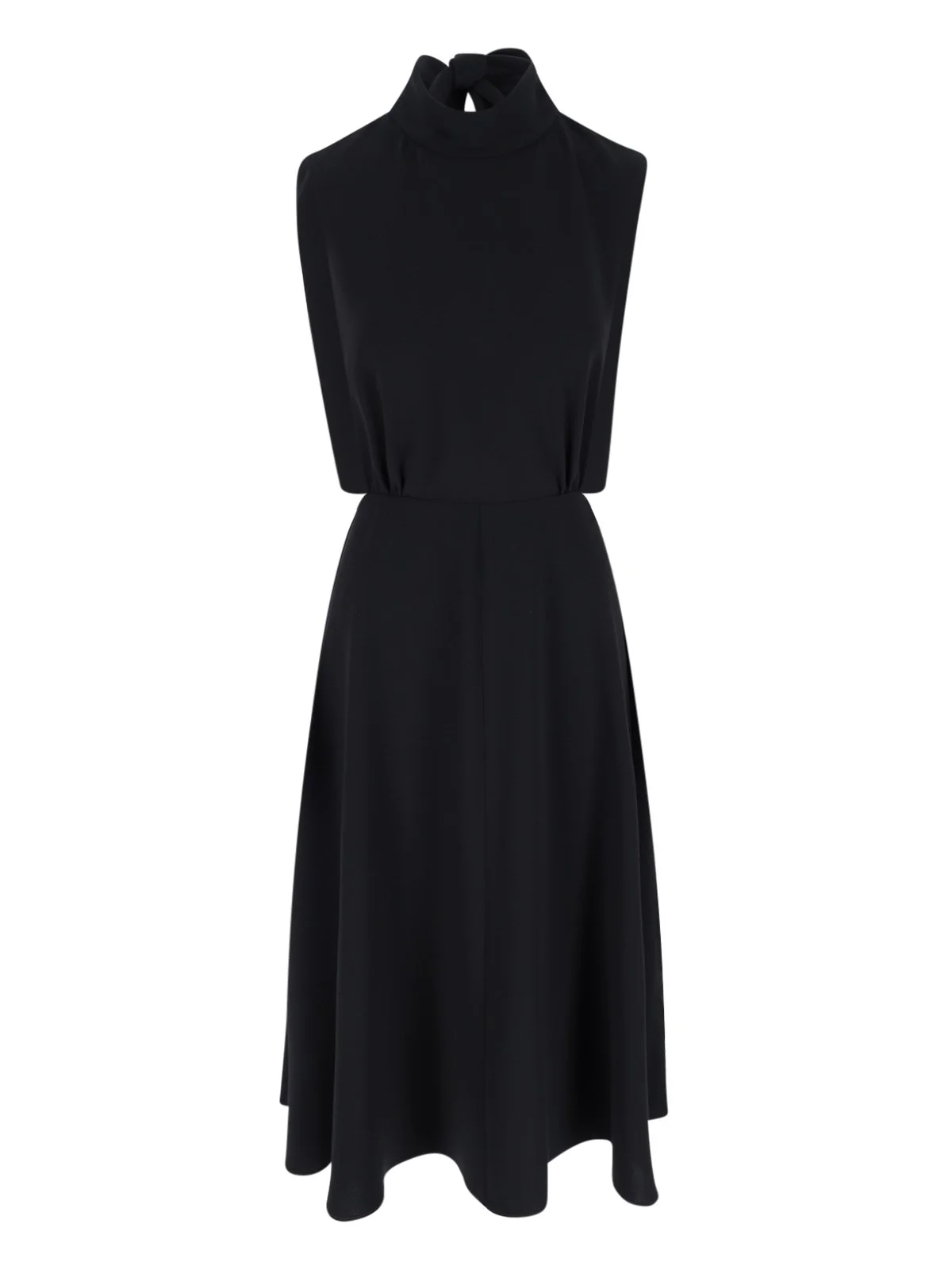 ASPESI MIDI DRESS IN BLACK FABRIC, HIGH NECK, BACK ZIP CLOSURE, BACK BOW DETAIL, STRAIGHT HEM. PRODUCT INFO PRODUCT CODE 2970 P00101241 COMPOSITION: 70% TRIACETATE, 30% POLYESTER SIZE AND FIT: REGULAR FIT MADE IN: ITALY