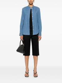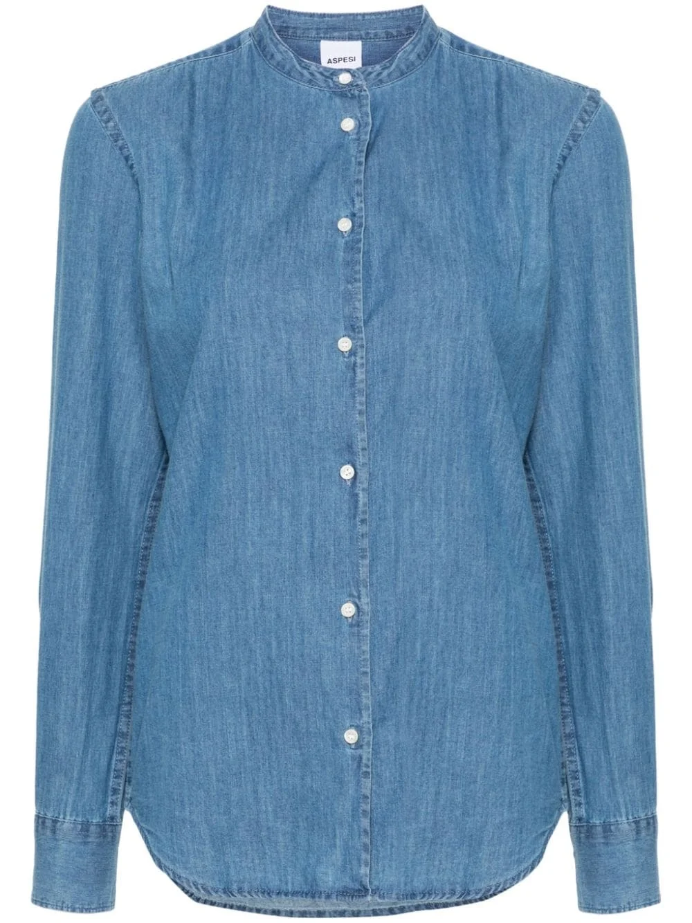 denim cotton shirt Highlights - Blue - Cotton - Washed denim - Band collar - Long sleeves with buttoned cuffs - Pleat detailing to the sleeve - Logo tag to the side - Curved hem - Front button fastening Imported Composition Cotton 100% SIZE & FIT Model measurements Height 5 ft 10 in(1.78 m) Bust/Chest 33.07 in(84 cm) Hips 36.61 in(93 cm) Waist 24.8 in(63 cm) FittingInformation Designed for a slim fit that sits just away from the body offering a close yet comfortable fit Made from a midweight non-stretch fabric This piece fits true to size – take your usual size