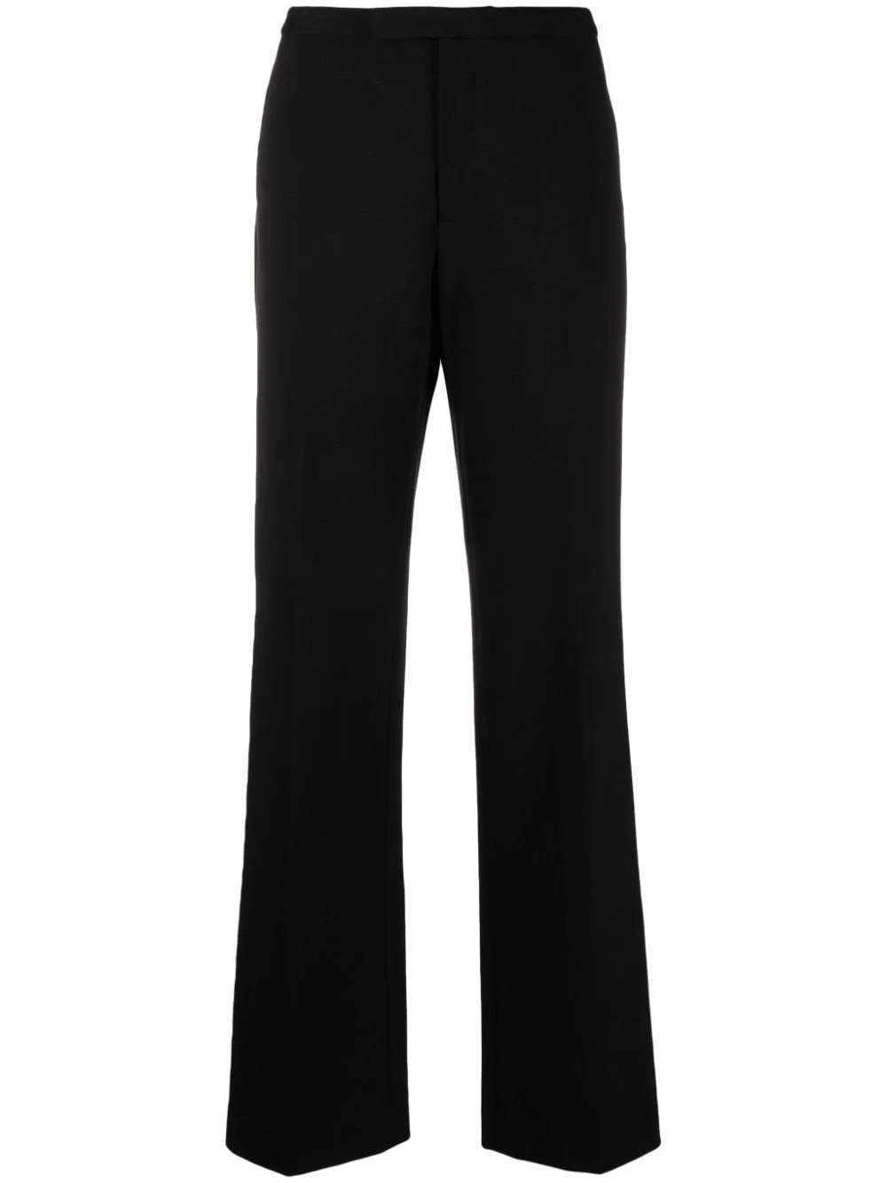 off-centre flared trousers Highlights - Black - Off-centre front fastening - Two side inset pockets - Two rear button-fastening pockets - Flared design - Straight hem Made in Italy Composition Viscose 69%, Polyamide 25%, Spandex/Elastane 6% Washing instructions Hand Wash