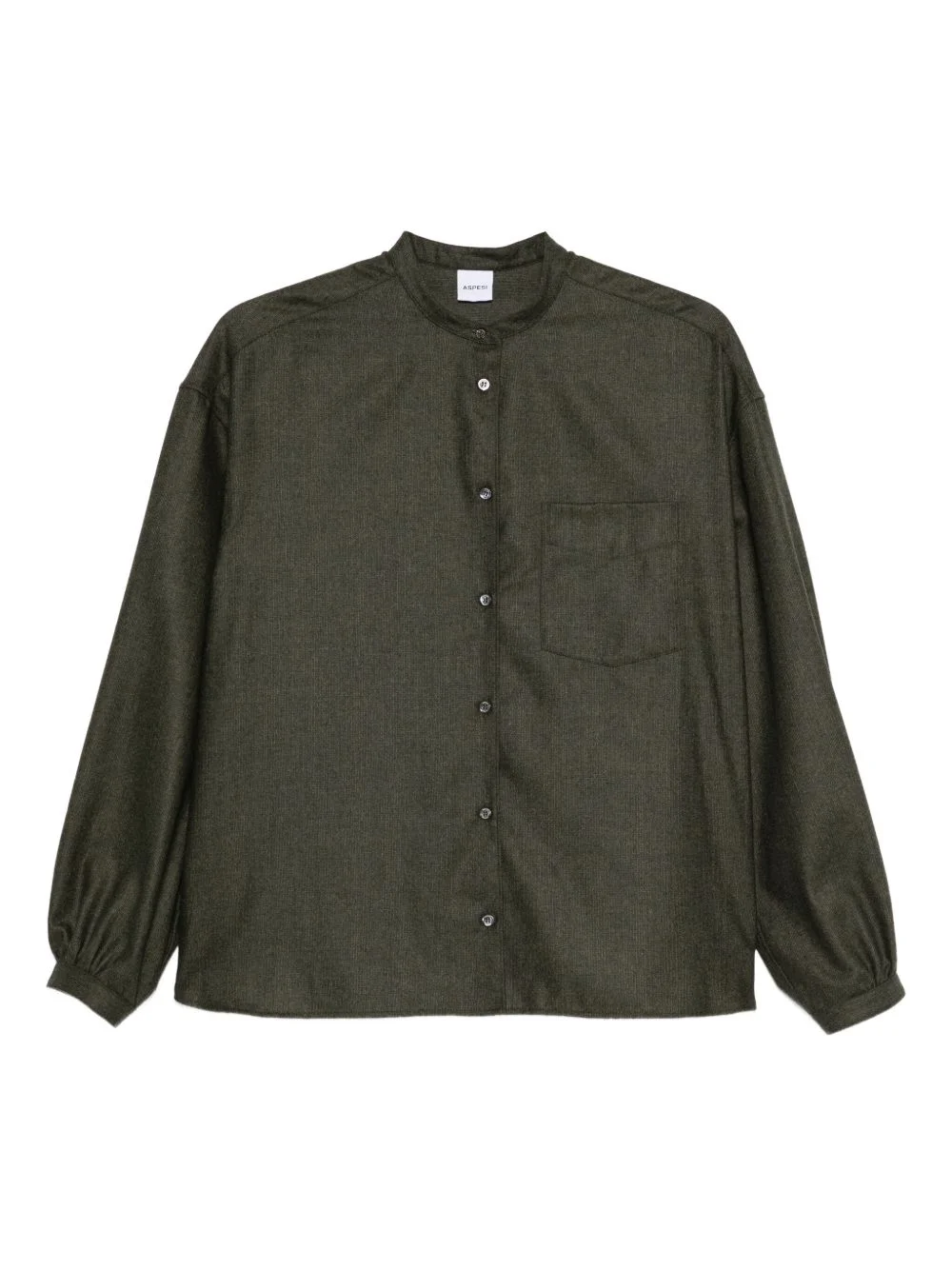 pocket shirt Highlights - Dark green - Chest pocket - Button fastening - Long sleeves - Band collar - Gathered detailing Imported Composition Wool 62%, Polyamide 35%, Cashmere 3% Washing instructions Read Manufacturer Guidelines