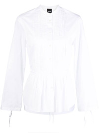 peplum button-up shirt white cotton pleat detailing collarless front button fastening long sleeves peplum hem Made in Italy Composition Outer: Cotton 100% SIZE & FIT Model measurements Height 5 ft 9 in(1.76 m) Bust/Chest 31.1 in(79 cm) Hips 35.03 in(89 cm) Waist 24.4 in(62 cm) FittingInformation This piece fits true to size. We recommend you get your regular size Cut for a loose fit Made with a mid-weight non-stretch fabric Washing instructions Machine Wash
