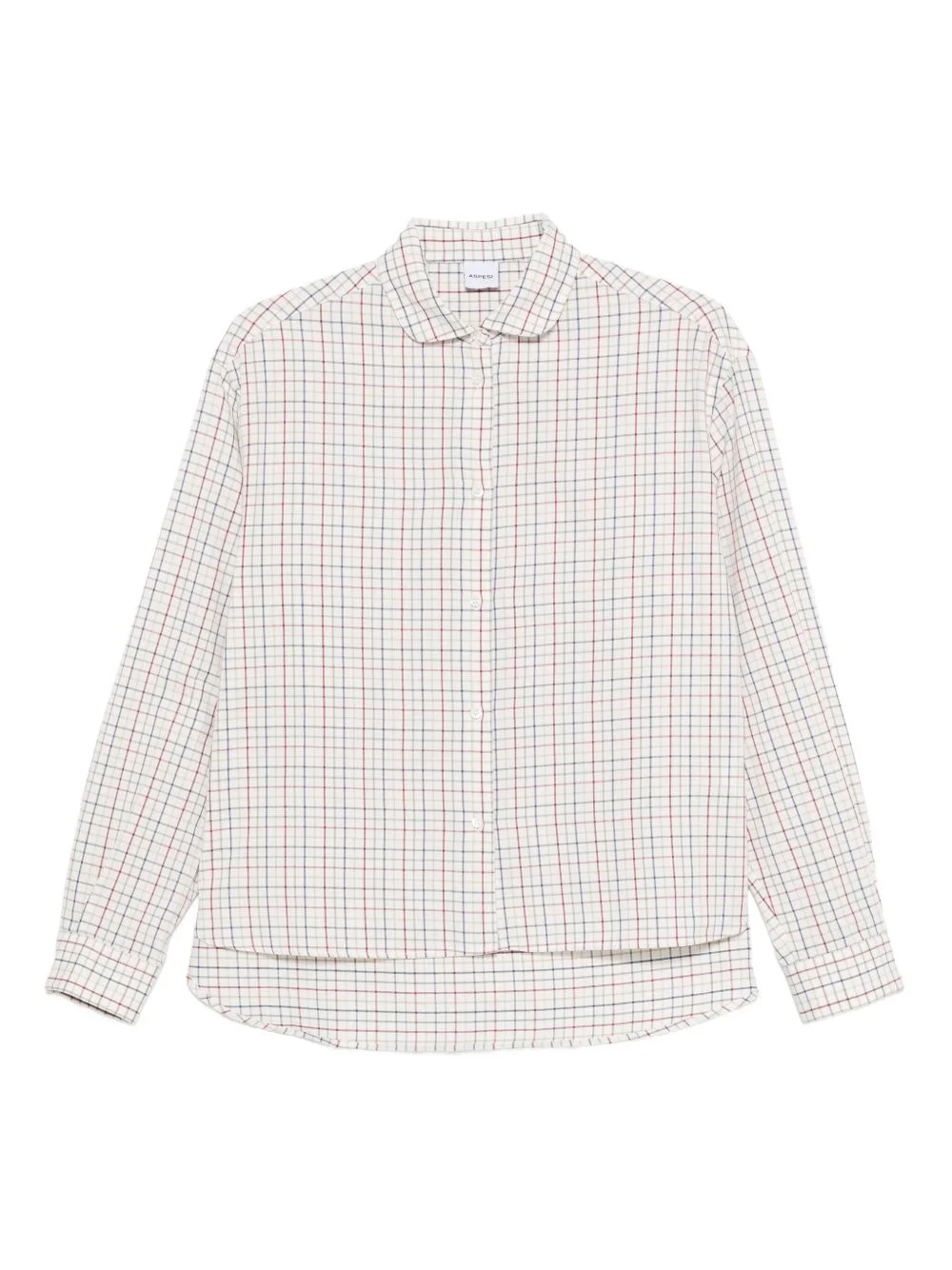 Peter-Pan-collar checked shirt Highlights - Beige - Checked pattern - Peter-pan collar - Button fastening - Long sleeves - Curved hemline Imported Composition Cotton 90%, Wool 10% Washing instructions Read Manufacturer Guidelines