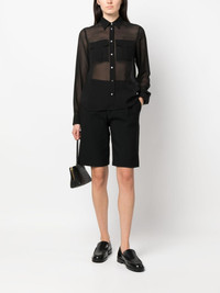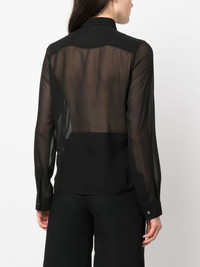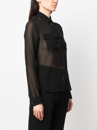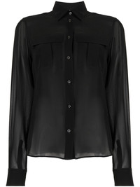 semi-sheer construction silk blouse Highlights - Black - Silk - Semi-sheer construction - Spread collar - Front button fastening - Two chest flap pockets - Long sleeves - Buttoned-cuff sleeves - Straight hem Made in Italy Composition Silk 100% SIZE & FIT Model measurements Height 5 ft 10 in(1.78 m) Bust/Chest 31.49 in(80 cm) Hips 36.22 in(92 cm) Waist 25.59 in(65 cm) FittingInformation Designed for a relaxed fit, this piece allows for comfort and movement when worn Made from a lightweight non-stretch fabric This piece fits true to size – take your usual size Washing instructions Dry Clean Only