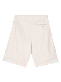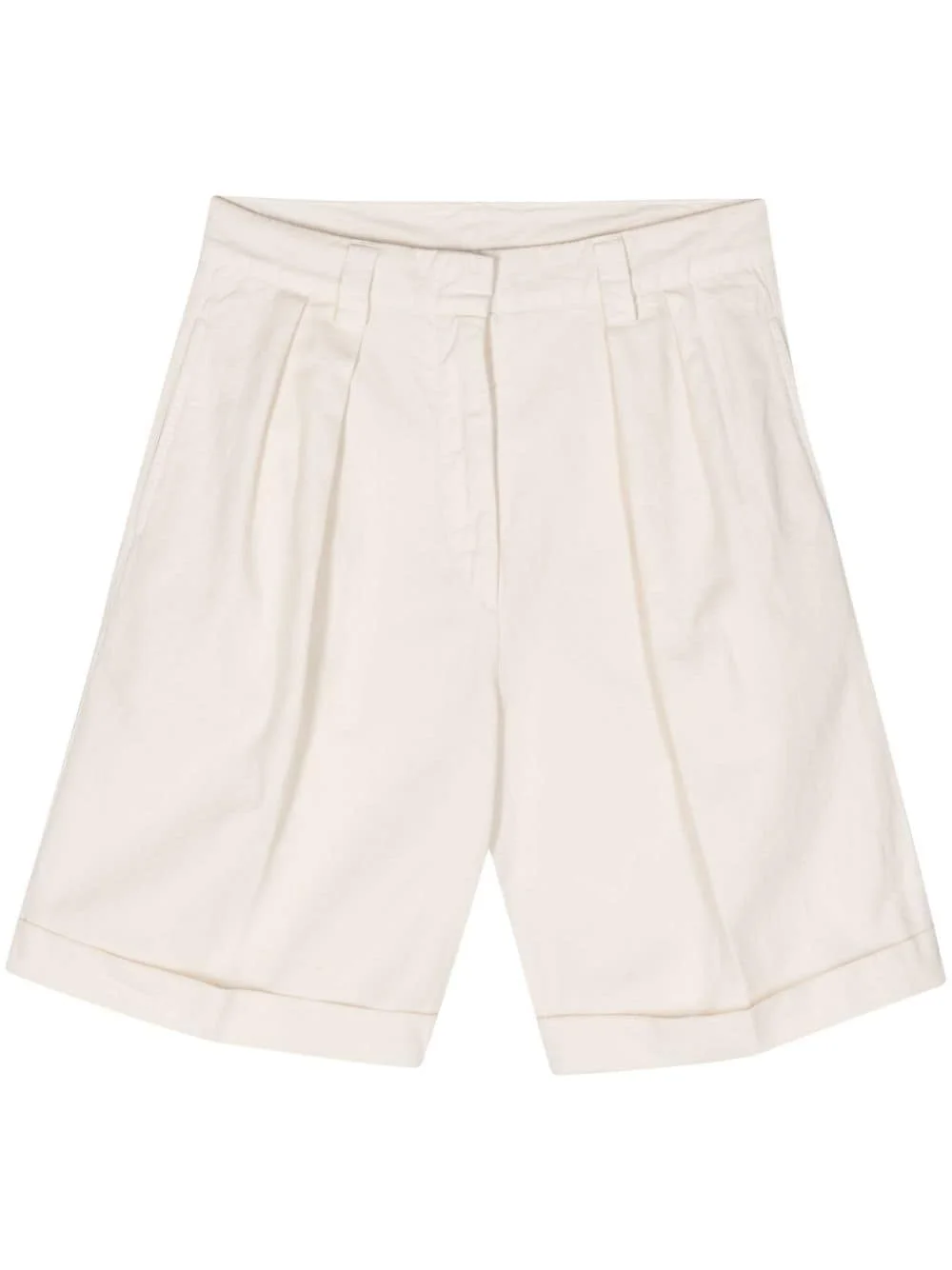 pleated chino shorts Highlights - Light beige - Cotton-linen blend - Pleat detailing - Belt loops - Concealed front button, hook and zip fastening - Straight leg - Two side slit pockets - Rear button-fastening pocket - Turn-up cuffs - Above-knee length Imported Composition Cotton 61%, Linen/Flax 39%