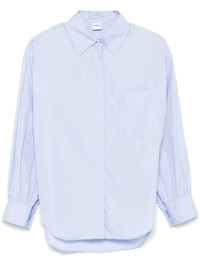 cotton shirt Highlights - Blue - Cotton - Poplin texture - Concealed front button fastening - Classic collar - Long sleeves - Buttoned cuffs - Chest patch pocket - Gathered detailing - Curved hem Imported Composition Cotton 100%