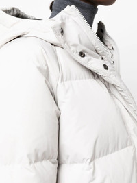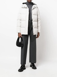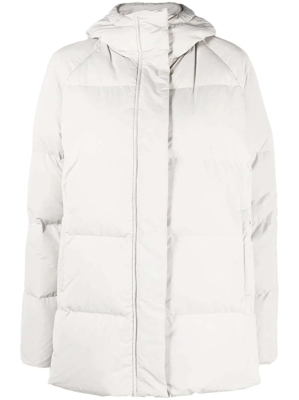quilted-finish hooded coat grey quilted finish padded design concealed front fastening classic hood long sleeves straight hem Imported Composition Outer: Polyester 100% Lining: Polyamide 100% SIZE & FIT Model measurements Height 5 ft 10 in(1.78 m) Bust/Chest 31.49 in(80 cm) Hips 37 in(94 cm) Waist 23.62 in(60 cm) FittingInformation This piece fits true to size. We recommend you get your regular size Cut for a loose fit Made with a mid-weight non-stretch fabric Washing instructions Machine Wash