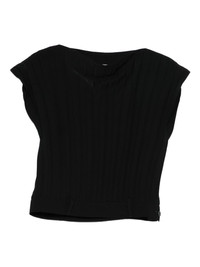 ribbed top Highlights - Black - Ribbed texture - Cap sleeves - Button detail - Boat neck Imported Composition Fabric 100% Washing instructions Read Manufacturer Guidelines