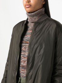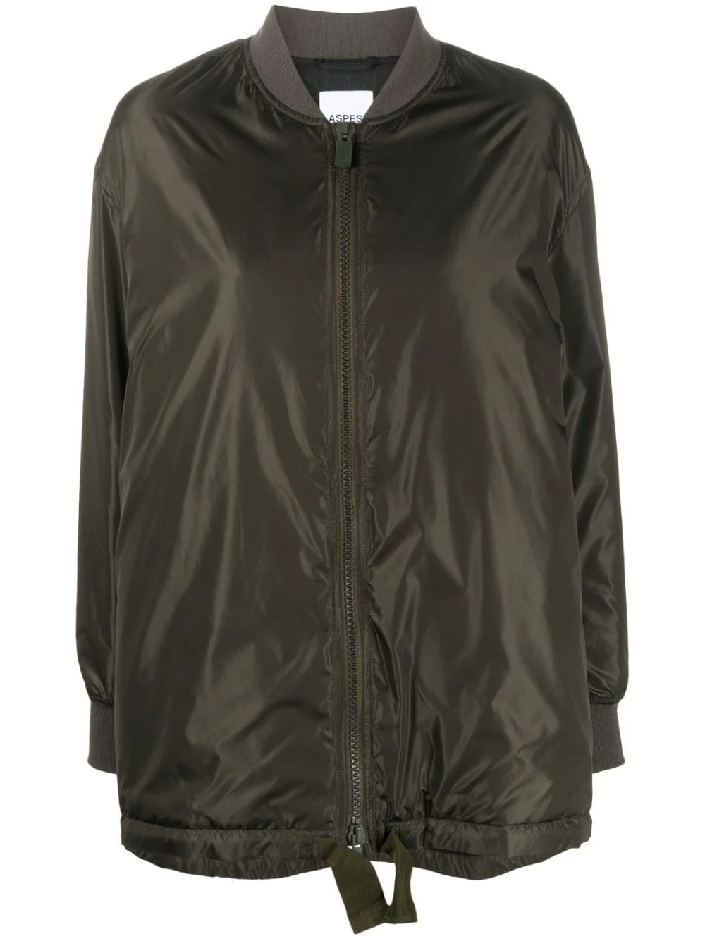 drawstring padded bomber jacket Highlights - Khaki - Baseball collar - Long sleeves - Ribbed cuffs - Front zip fastening - High-low hem - Flared hem Made in Italy Composition Outer: Polyamide 100% Lining: Polyamide 100%, Polyester 100% SIZE & FIT Model measurements Height 5 ft 11 in(1.8 m) Bust/Chest 30.7 in(78 cm) Hips 35.03 in(89 cm) Waist 24.4 in(62 cm) FittingInformation Designed to be unstructured, offering a loose fit throughout The internal drawstring at the hem allows for fitted preferences Made from a padded non-stretch fabric, giving it no natural elasticity This piece fits true to size – take your usual size Washing instructions Machine Wash