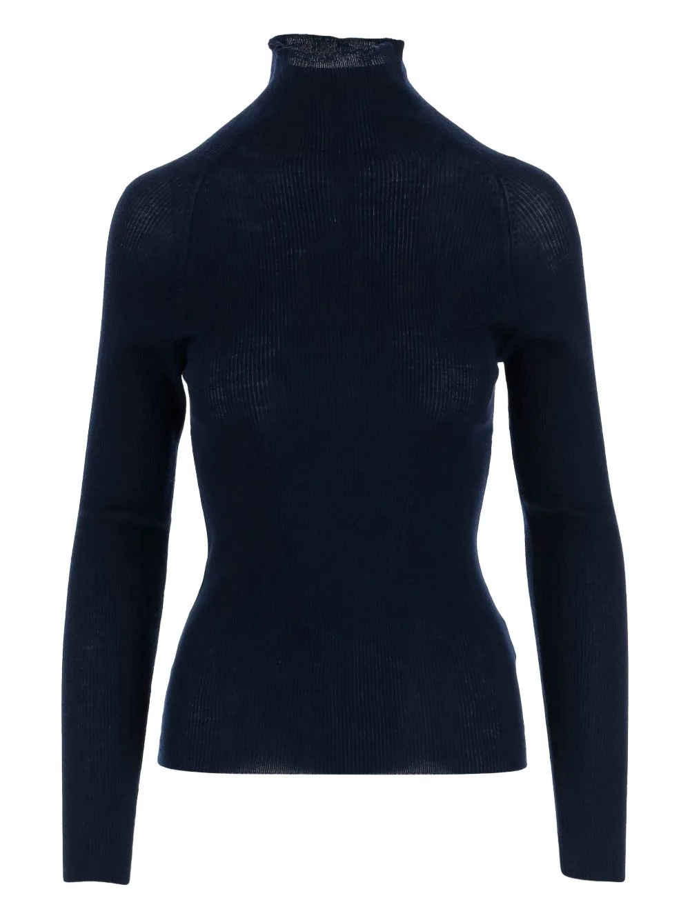 ribbed turtleneck sweater Highlights - Black - Ribbed texture - Turtleneck - Long sleeves - Raglan sleeves Imported Composition Virgin Wool 100% Washing instructions Read Manufacturer Guidelines