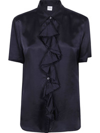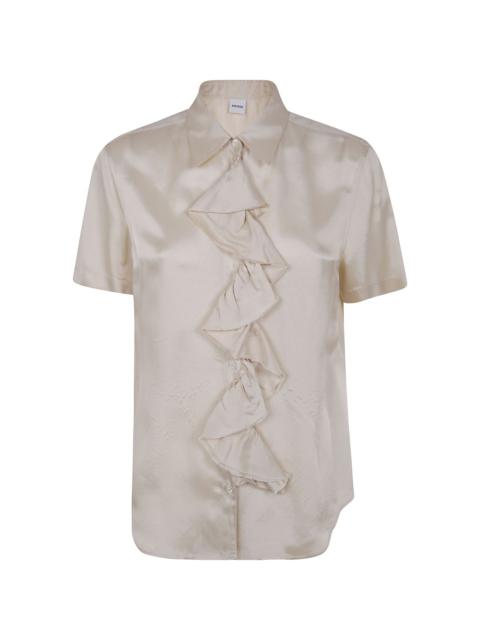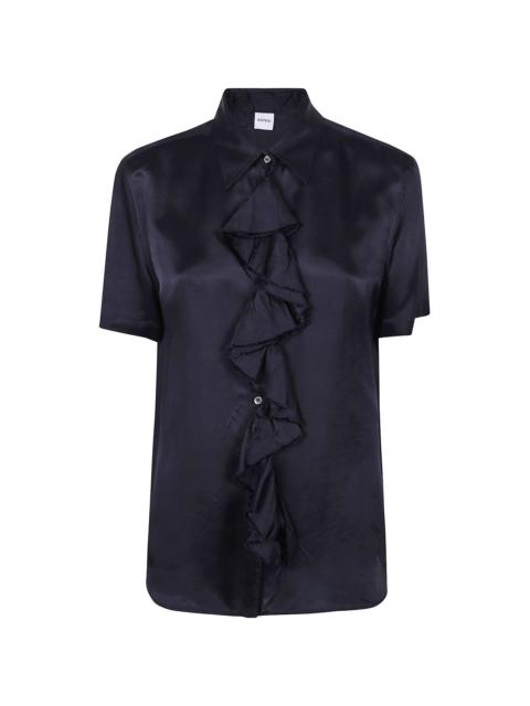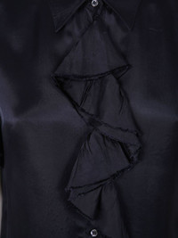 ruffle short-sleeve blouse Highlights - Black - Front button fastening - Ruffled detailing - Asymmetric hem Imported Composition Viscose 100% Washing instructions Read Manufacturer Guidelines