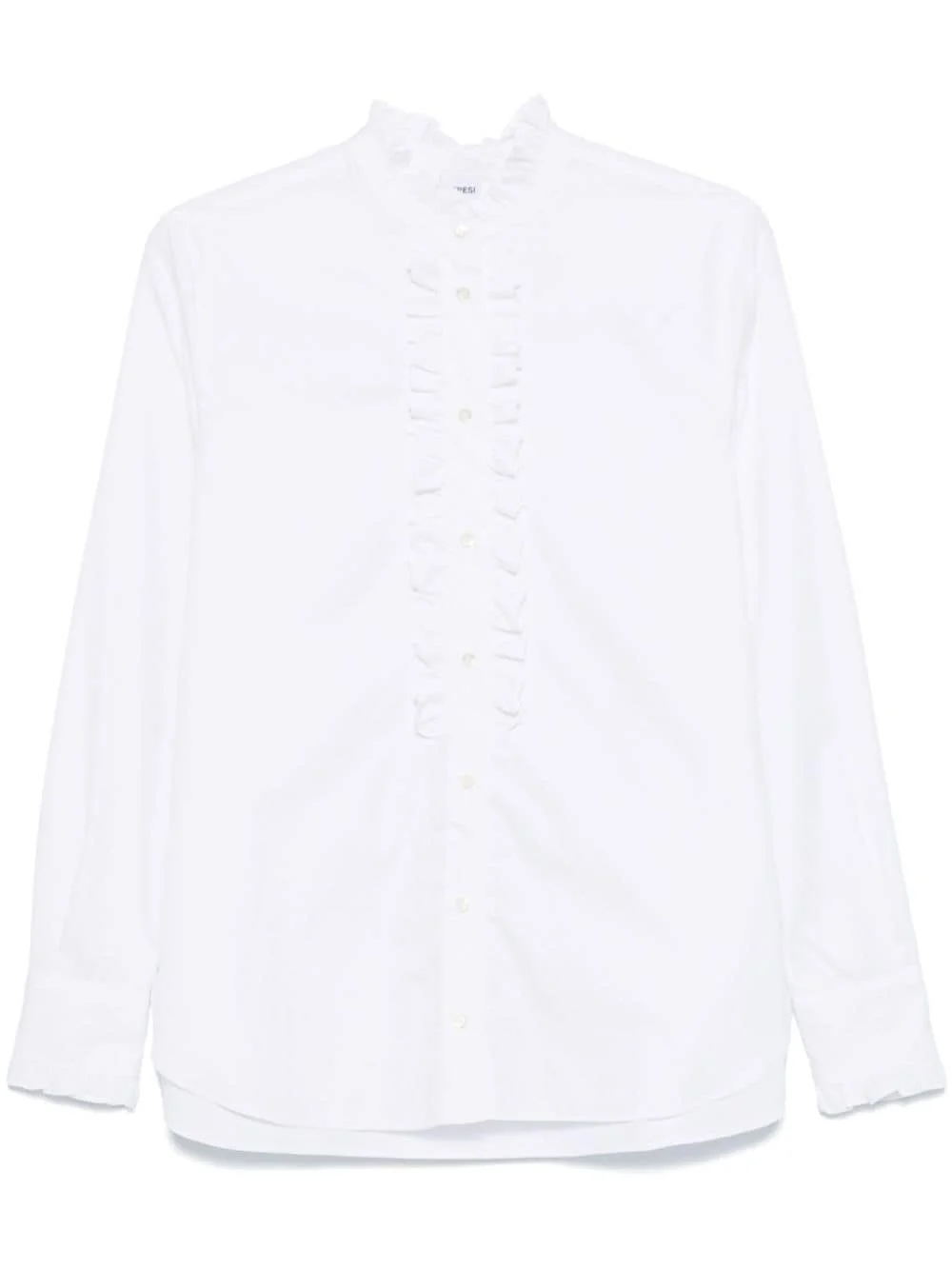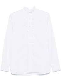 ruffled shirt Highlights - White - Cotton - Poplin texture - Ruffled detailing - Front button fastening - Frilled neckline - Long sleeves with buttoned cuffs - Curved hem Imported Composition Cotton 100%