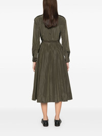Scarlet midi dress Highlights - Khaki - Front press-stud fastening - Classic collar - Pleat detailing - Long sleeves - Press-stud fastening cuffs - Belt loops - Detachable and adjustable waist belt - A-line skirt - Two side inset pockets - Unlined - Straight hem - Mid-length Made in Italy Composition Polyester 100% SIZE & FIT Model measurements Height 5 ft 10 in(1.78 m) Bust/Chest 33.85 in(86 cm) Hips 36.61 in(93 cm) Waist 26.77 in(68 cm) FittingInformation Designed for a close fit at the chest with a loose fit over the waist and hips The belt offers adjustability for fitted preferences Made from a midweight non-stretch fabric