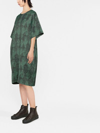scribble-print T-shirt dress Aspesi recreates a classic silhouette with this mid-length T-shirt dress. Adorned with an all-over scribble print, the Italian label injects a contemporary feel into this relaxed design. Made in Italy Composition Viscose 83%, Wool 17% SIZE & FIT Model measurements Height 5 ft 11 in(1.8 m) Bust/Chest 31.49 in(80 cm) Hips 35.43 in(90 cm) Waist 25.19 in(64 cm) FittingInformation This piece fits true to size. We recommend you get your regular size Cut for a loose fit Made with a mid-weight non-stretch fabric Washing instructions Dry Clean Only