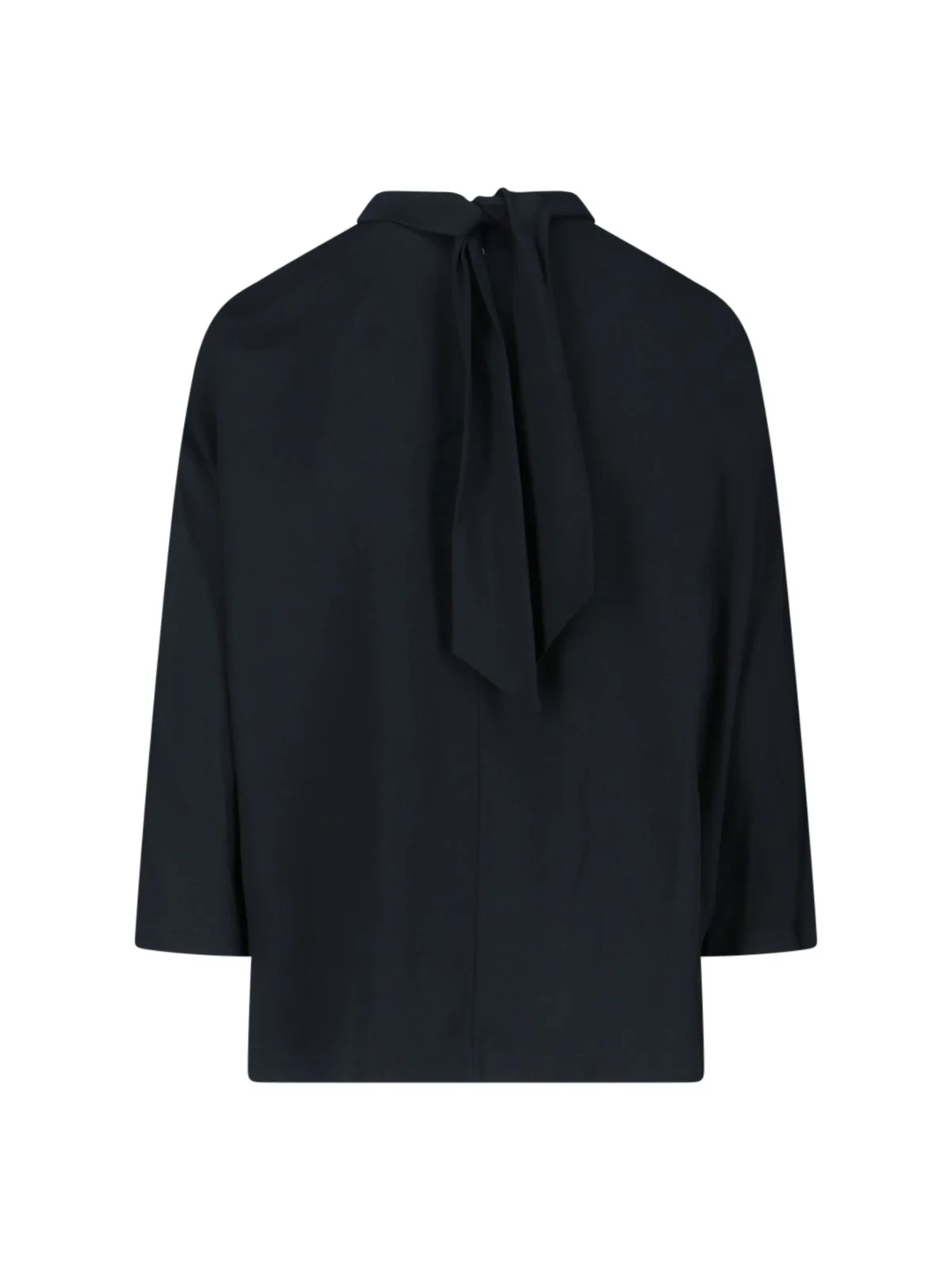 ASPESI BLACK VISCOSE BOW SHIRT WITH FRONT BOW DETAIL, THREE-QUARTER SLEEVES, STRAIGHT HEM. PRODUCT INFO PRODUCT CODE 5662 D54310241 COMPOSITION: 100% VISCOSE SIZE AND FIT: REGULAR FIT MADE IN: CHINA
