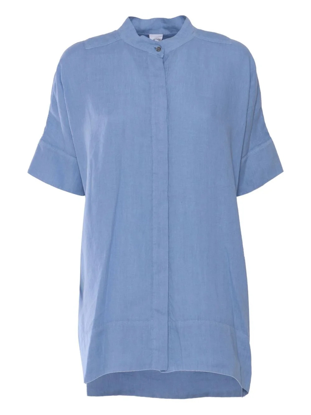 short-sleeve linen shirt Highlights - Light blue - Linen - Short sleeves - Button fastening - Collarless Imported Composition Linen/Flax 100% Washing instructions Read Manufacturer Guidelines