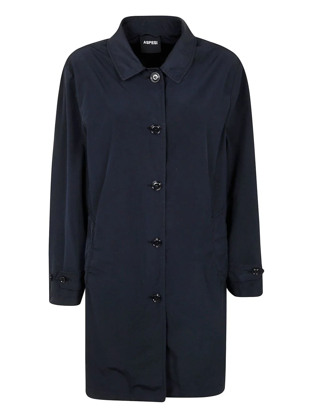 single-breasted coat Highlights - Navy blue - Front button fastening - Two side welt pockets - Buttoned-cuff sleeves - Central rear vent Imported Composition Polyester 80%, Polyamide 20%
