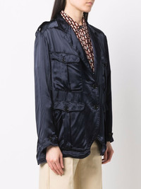 single-breasted tailored blazer navy-blue high-shine finish front button fastening tailored cut long sleeves Made in Italy Composition Viscose 100% SIZE & FIT Model measurements Height 5 ft 9 in(1.74 m) Bust/Chest 32.28 in(82 cm) Hips 35.82 in(91 cm) Waist 24.01 in(61 cm) Washing instructions Machine Wash