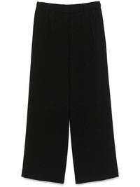 crepe elasticated trousers Highlights - Black - Crepe texture - Elasticated waistband - Mid-rise - Two side inset pockets - Straight leg Made in Italy Composition Triacetate 70%, Polyester 30% SIZE & FIT Model measurements Height 5 ft 9 in(1.75 m) Bust/Chest 30.7 in(78 cm) Hips 35.03 in(89 cm) Waist 23.62 in(60 cm) FittingInformation Designed with a wide-leg cut, these trousers allow for a close fit at the waist and offer a loose and roomy fit over the leg The elasticated waist allows for a comfortable fit Made from a midweight non-stretch fabric, this piece offers minimal elasticity when worn