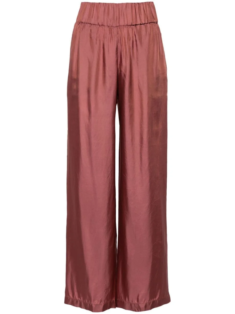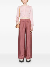 straight-leg satin trousers Highlights - Mulberry pink - Satin finish - Ruched detailing - Elasticated waistband - Two side inset pockets - Straight leg Made in Italy Composition Acetate 52%, Viscose 48% SIZE & FIT Model measurements Height 5 ft 9 in(1.75 m) Bust/Chest 34.64 in(88 cm) Hips 36.61 in(93 cm) Waist 26.37 in(67 cm) FittingInformation Designed for a straight-leg fit, these trousers allow for a close fit at the waist and an unrestricted, comfortable fit over the leg The elasticated waist allows for a comfortable fit Made from a lightweight non-stretch fabric