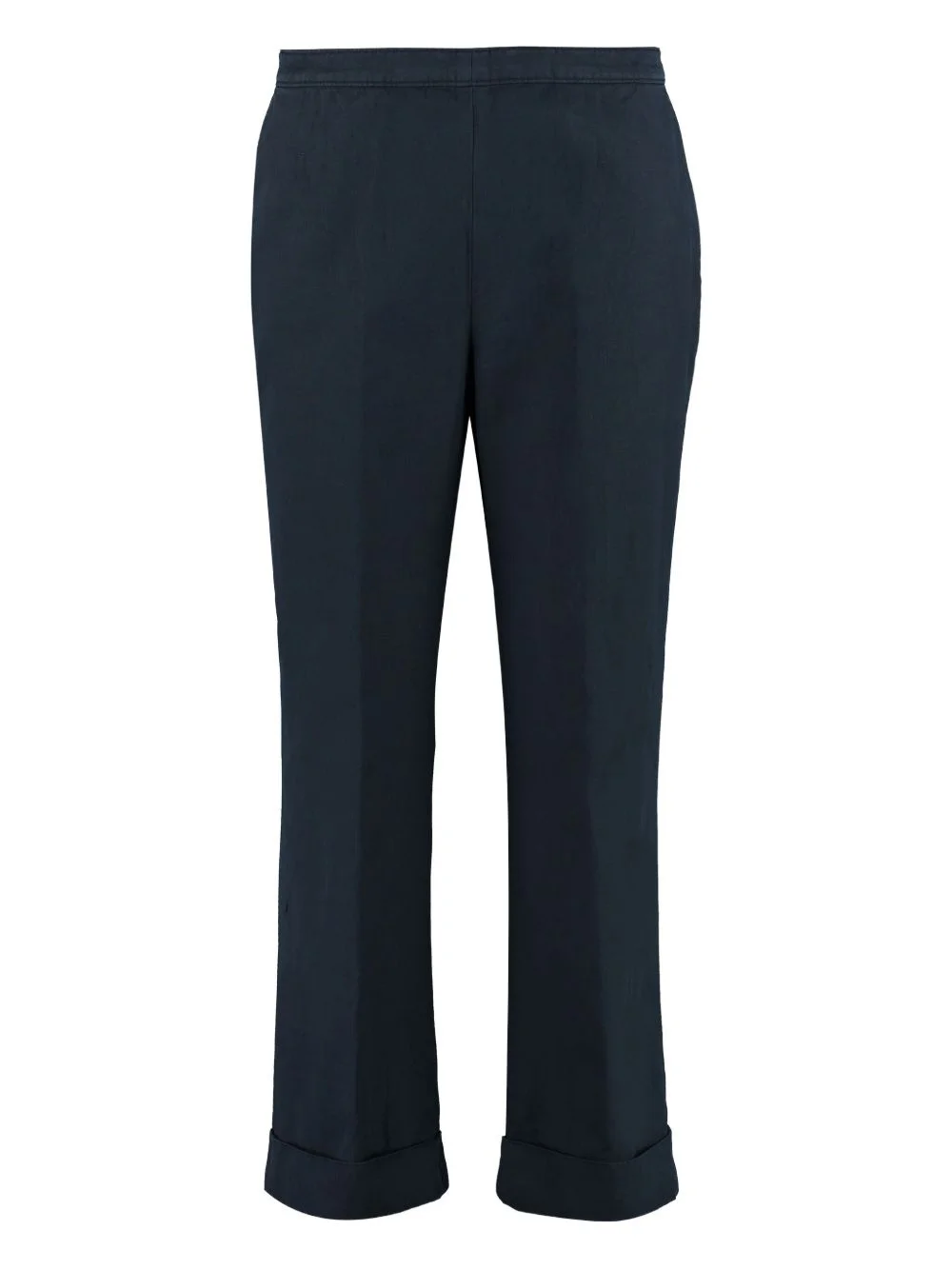 straight-leg trousers Highlights - Navy blue - Two side slit pockets - Buttoned jetted pocket - Straight leg Imported Composition Cotton 61%, Linen/Flax 39% Washing instructions Read Manufacturer Guidelines