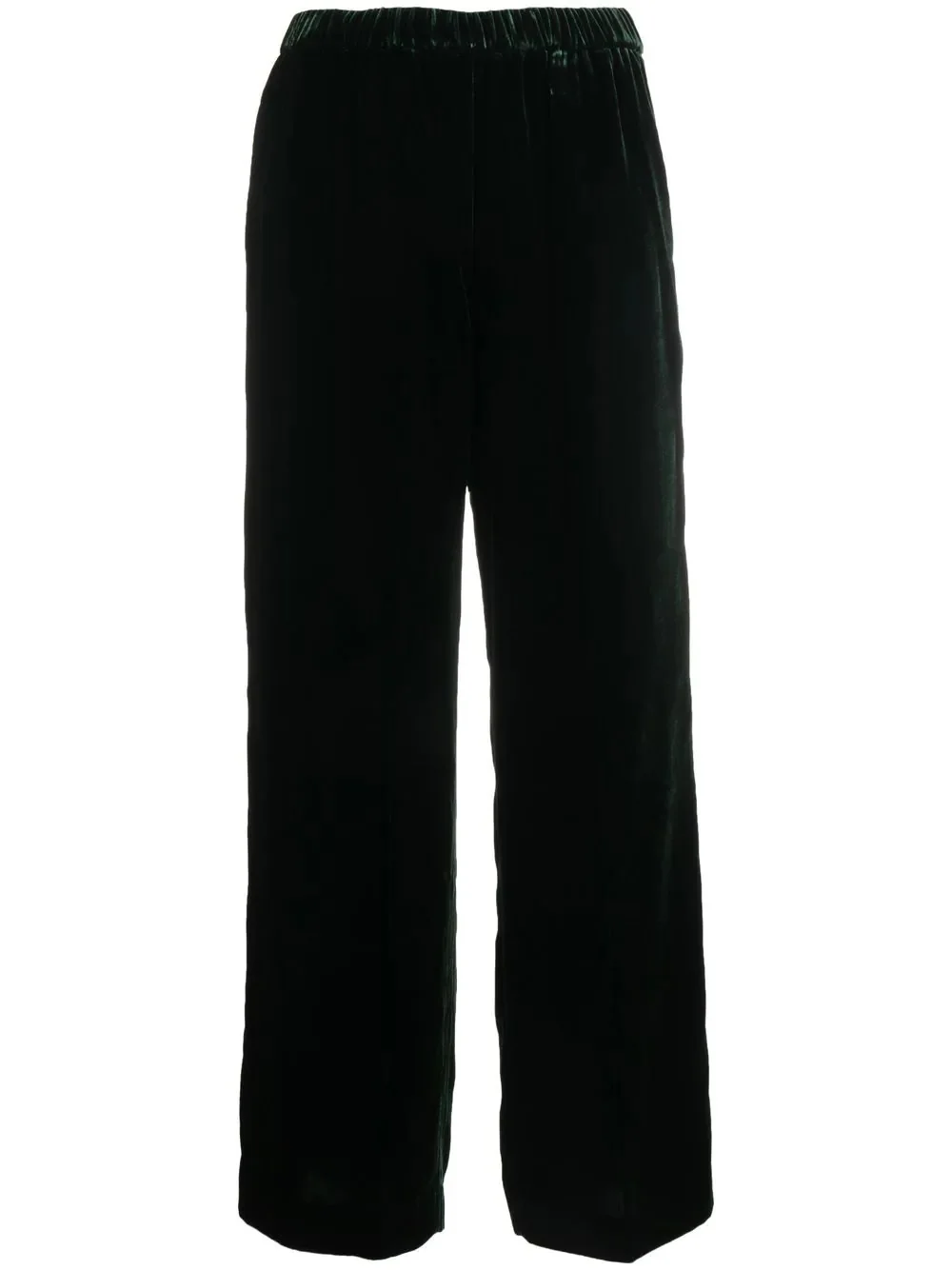 straight-leg velvet trousers straight-leg velvet trousers from ASPESI featuring dark green, velvet finish, straight leg, cropped, high-waisted, elasticated waistband and two side welt pockets. Made in Italy Composition Viscose 82%, Silk 18% SIZE & FIT Model measurements Height 5 ft 10 in(1.78 m) Bust/Chest 31.49 in(80 cm) Hips 36.22 in(92 cm) Waist 25.59 in(65 cm) FittingInformation This piece fits true to size. We recommend you get your regular size Designed to be fitted at the waist, loose over the leg Made with a mid-weight non-stretch fabric Washing instructions Dry Clean Only