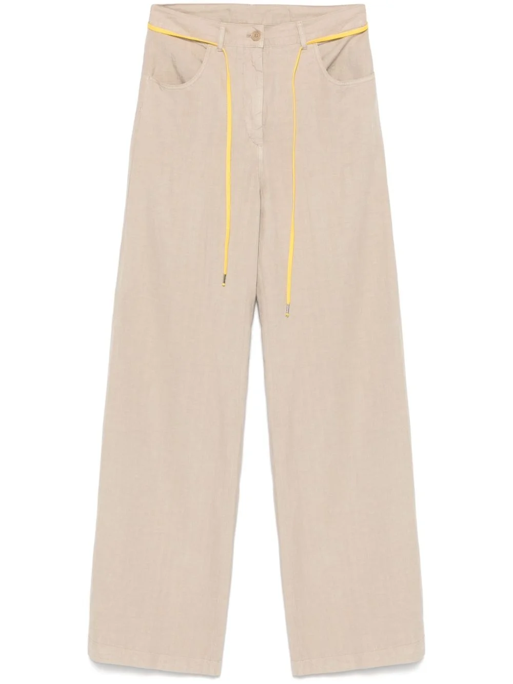 striped wide-leg trousers Highlights - Light beige - Concealed fly and button fastening - Detachable waist belt - Belt loops - Two rounded pockets to the sides Made in Italy Composition Lyocell 59%, Linen/Flax 23%, Cotton 18% SIZE & FIT Model measurements Height 5 ft 10 in(1.77 m) Bust/Chest 31.88 in(81 cm) Hips 36.22 in(92 cm) Waist 24.01 in(61 cm) FittingInformation Designed with a wide-leg cut, these trousers allow for a close fit at the waist and offer a loose and roomy fit over the leg Made from a midweight non-stretch fabric