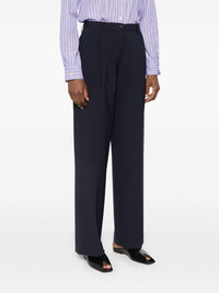 tailored trousers Highlights - Navy blue - Interlock weave - Tailored design - Front button and zip fastening - Belt loops - Pleat detailing - Two side slit pockets - Rear button-fastening pocket - Straight leg Imported Composition Polyester 53%, Virgin Wool 43%, Elastane 4% SIZE & FIT Model measurements Height 5 ft 11 in(1.8 m) Bust/Chest 31.49 in(80 cm) Hips 36.61 in(93 cm) Waist 24.4 in(62 cm) FittingInformation Designed with a wide-leg cut, these trousers allow for a close fit at the waist and offer a loose and roomy fit over the leg Made from a midweight non-stretch fabric, this piece offers minimal elasticity when worn