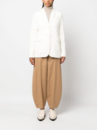 three-pocket corduroy blazer Highlights - White - Corduroy - Notched lapels - Front button fastening - Color-coordinating buttons - Chest patch pocket - Two front flap pockets - Long sleeves - Rear slit - Curved front hem - Straight rear hem Made in Italy Composition Lining: Cotton 100%, Polyester 100% Outer: Cotton 100% SIZE & FIT Model measurements Height 5 ft 10 in(1.77 m) Bust/Chest 31.88 in(81 cm) Hips 36.22 in(92 cm) Waist 24.01 in(61 cm) FittingInformation Designed for a slim fit that sits just away from the body offering a close yet comfortable fit Made from a midweight non-stretch fabric This piece fits true to size – take your usual size Washing instructions Machine Wash
