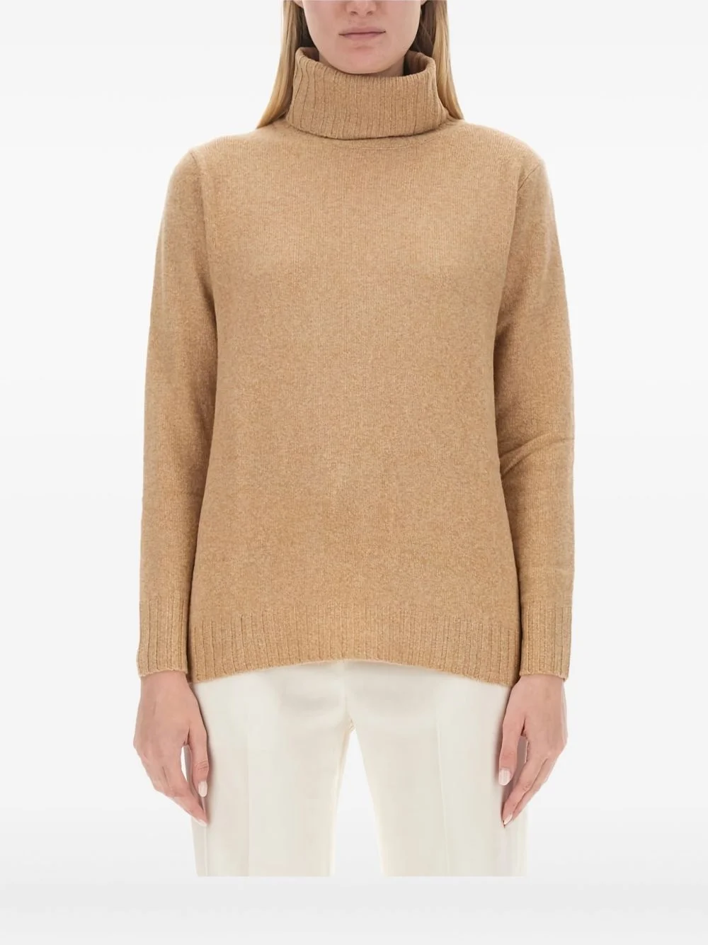 turtleneck long-sleeves sweater Highlights - Camel - Wool - Turtleneck neck - Long sleeves - Straight hem - Ribbed cuffs Imported Composition Wool 100% Washing instructions Read Manufacturer Guidelines