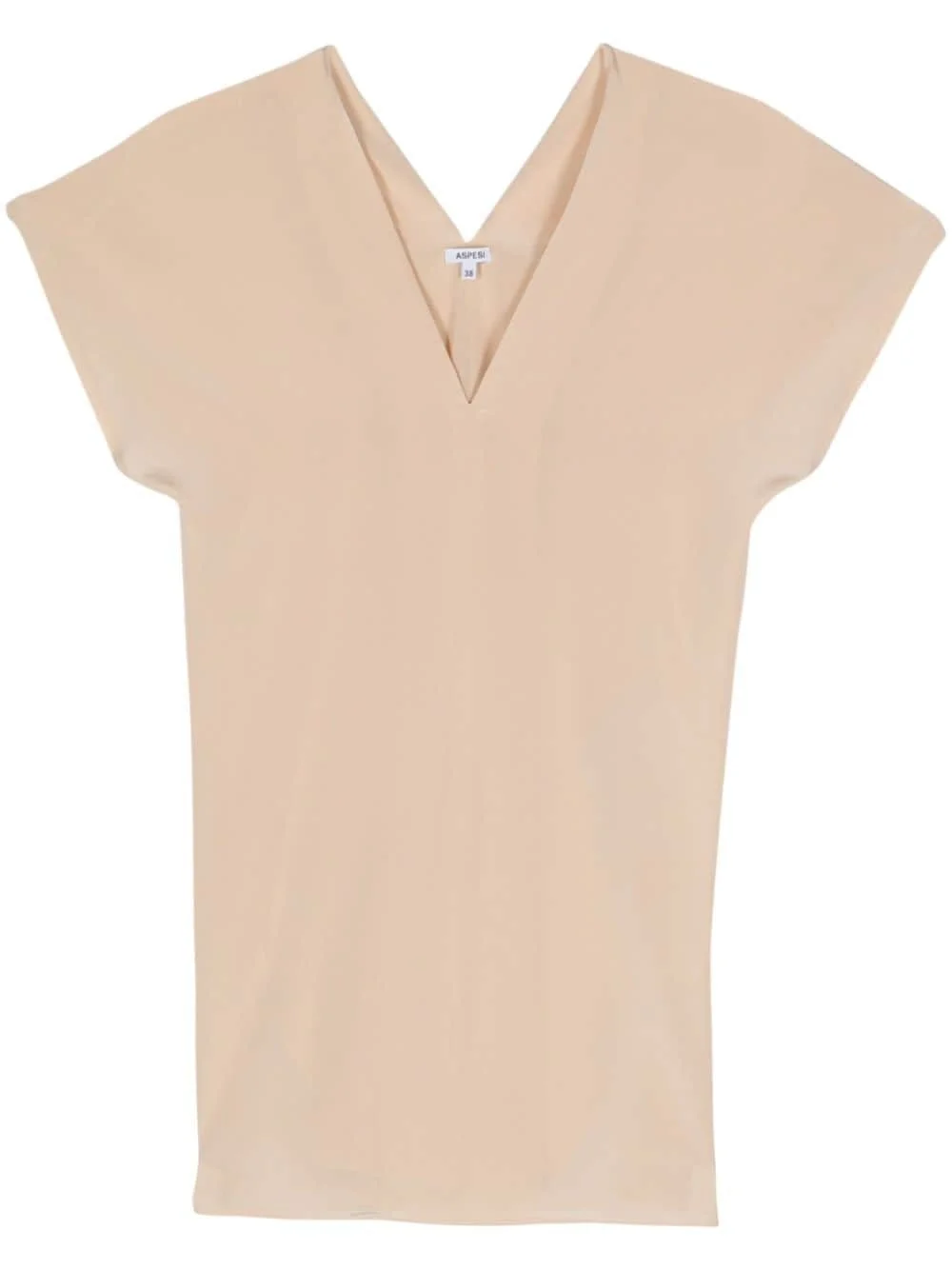 V-neck crepe silk blouse Highlights - Light beige - Silk - Cady texture - V-neck - Short sleeves - Short side slits - High-low hem Made in Italy Composition Silk 100%