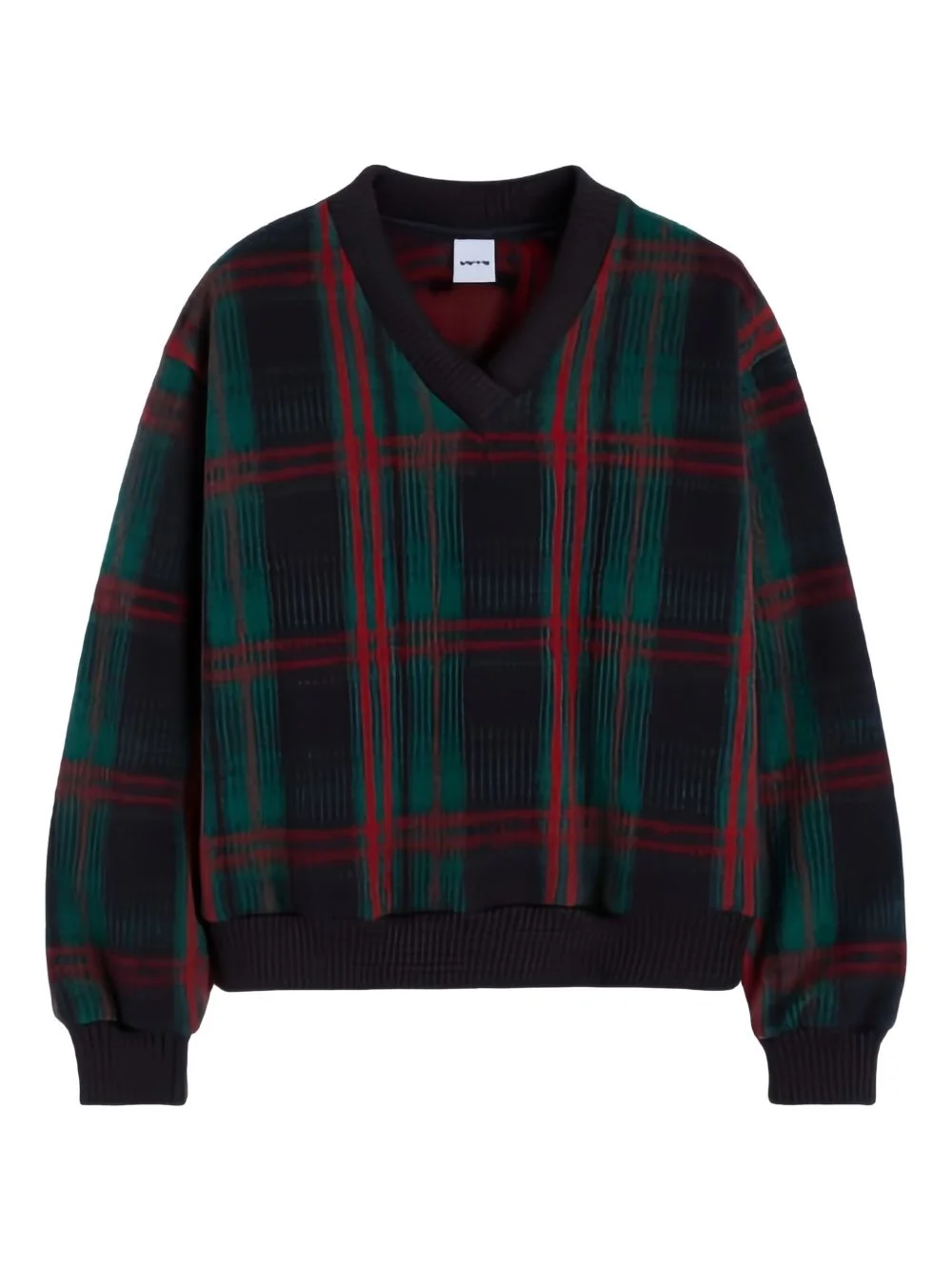 V-neck plaid sweater Highlights - Blue - Plaid pattern - V-neck - Long sleeves - Ribbed hem Imported Composition Wool 100% Washing instructions Read Manufacturer Guidelines