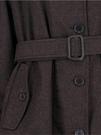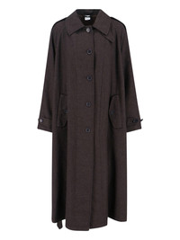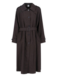 ASPESI DARK BROWN VIRGIN WOOL BLEND TRENCH COAT WITH CLASSIC COLLAR, BUTTON CLOSURE, SHOULDER WINGS, LONG RAGLAN SLEEVES, TWO VERTICAL FRONT FLAP POCKETS, ADJUSTABLE BELT, CENTRAL VENT AT THE BACK, STRAIGHT HEM. PRODUCT INFO PRODUCT CODE 0753 C80315325 COMPOSITION: 95% VIRGIN WOOL, 5% CASHMERE SIZE AND FIT: LOOSE FIT MADE IN: ITALY