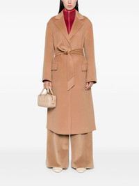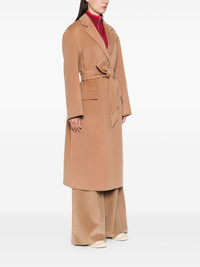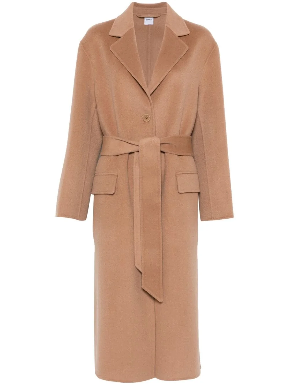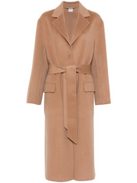 wool coat Highlights - Camel brown - Wool - Felted - Front button fastening - Notched collar - Long sleeves - Two front flap pockets - Side slits - Straight hem - Long length Imported Composition Wool 100% SIZE & FIT Model measurements Height 5 ft 10 in(1.78 m) Bust/Chest 33.46 in(85 cm) Hips 36.22 in(92 cm) Waist 23.22 in(59 cm) FittingInformation Designed to be unstructured, offering a loose fit throughout The tie fastening gives an adaptable and personalised fit Made from a midweight non-stretch fabric