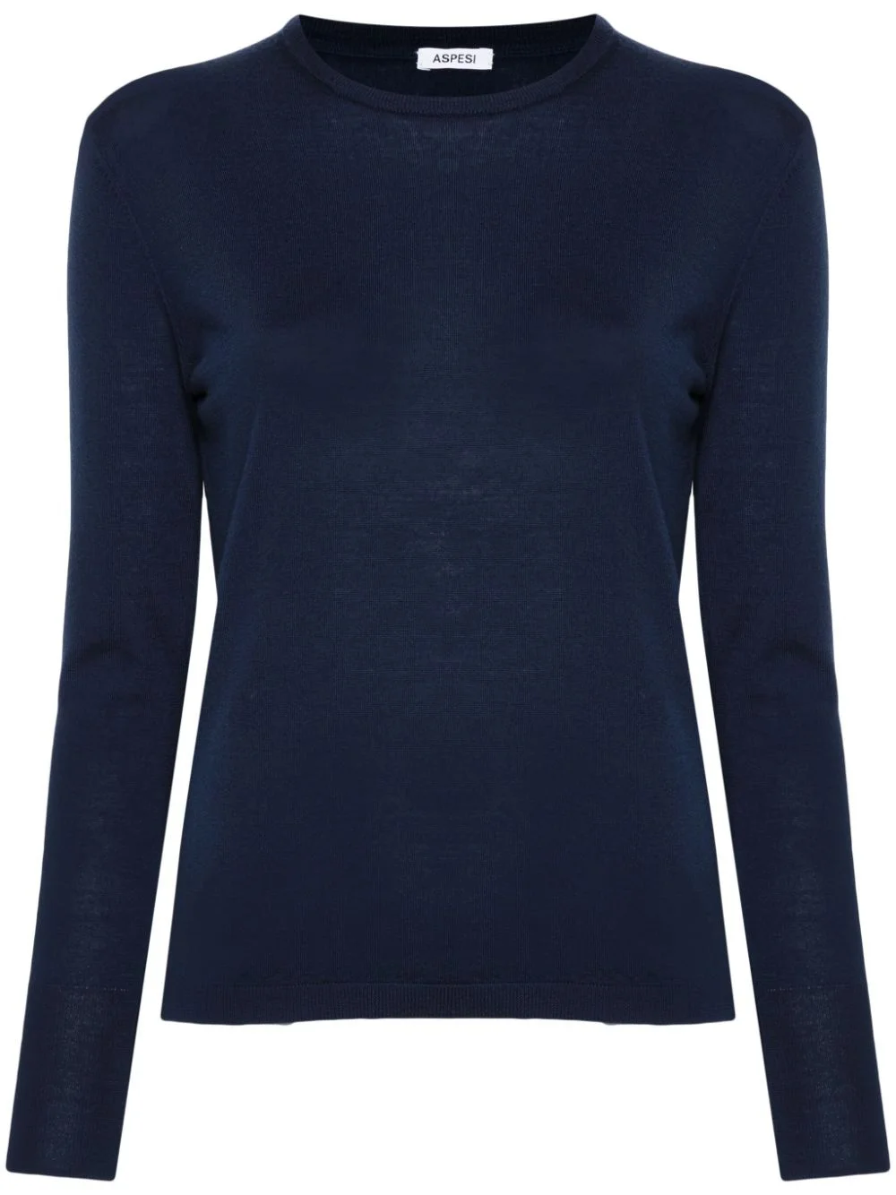 wool sweater Highlights - Navy blue - Wool - Fine knit - Crew neck - Long sleeves - Ribbed cuffs and hem Imported Composition Wool 100% SIZE & FIT Model measurements Height 5 ft 10 in(1.78 m) Bust/Chest 31.49 in(80 cm) Hips 37 in(94 cm) Waist 23.62 in(60 cm) FittingInformation Designed for a relaxed fit, this piece allows for comfort and movement when worn Made with a midweight knit, this piece offers some stretch This piece fits true to size – take your usual size